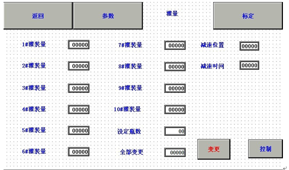 “全部變更”設(shè)定數(shù)值后再按“變更”按鍵,1—10#灌裝量全部設(shè)定到“全部變更”數(shù)值。